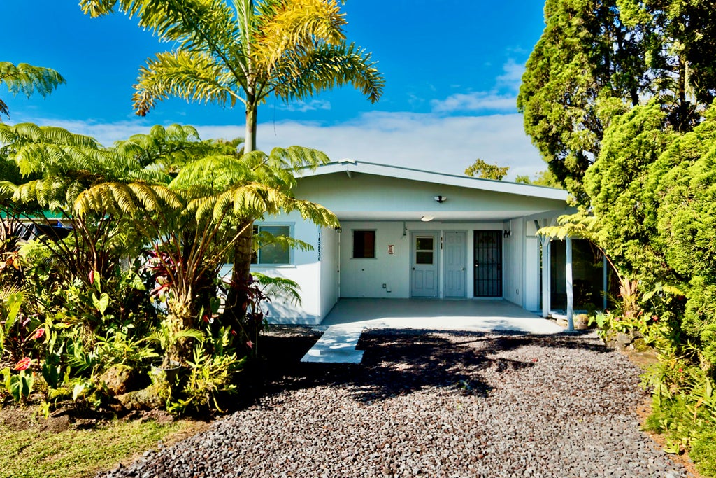 This recently renovated 3-bedroom, 2-bath home sits on a 12,000 sq. ft. lot in Ainaloa Subdivision on the Big Island of Hawai‘i. The property is fully landscaped with mature fruit trees, vibrant tropical flowers, and natural lava rock features, creating a private and peaceful setting.