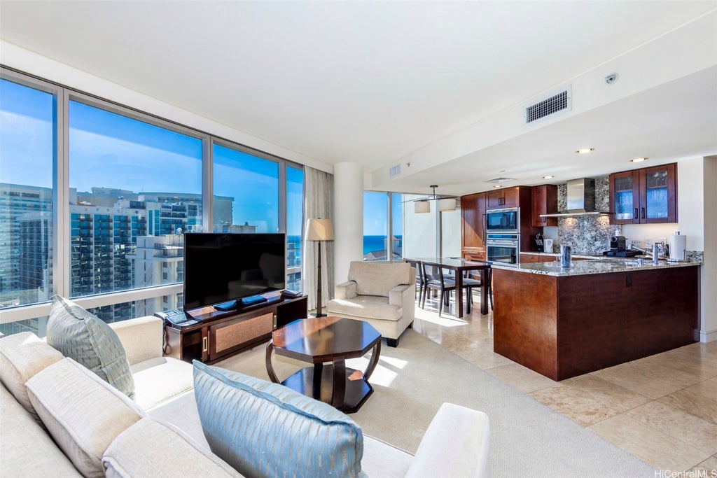 Ka La'i Waikiki Beach, formerly Trump International Hotel Waikiki, stands as an icon of luxury living in Honolulu. Situated along the southern coastline of Oahu near the entrance of Waikiki, this superb location puts you just across the street from world-famous Waikiki Beach, where turquoise ocean waters, stretching sandy beaches, and water activities await. This 22nd floor 1-bedroom corner residence enjoys dynamic views of paradise, stretching from the majestic Ko'olau Mountains to the Pacific Ocean. A large corner lanai adds the perfect place to enjoy indoor/outdoor living while taking in the sunrise. Enjoy a true resort lifestyle featuring signature concierge services, luxurious amenities, a stunning infinity-edge pool, fitness center, spa, and on-site restaurants, available at your leisure. Ka La'i is a hotel condominium and #2202 is in the hotel rental program. Listing includes enhanced, zoomed-in photos. The unit is under renovation and unable to show. The completion is scheduled on October 4, 2025.