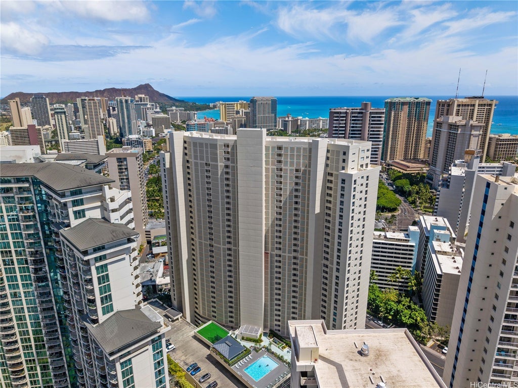 Welcome to Waipuna, this beautiful 2-bedroom, 2-bath condo offers 948 sq ft of interior living space and an additional 123 sq ft tiled lanai that overlooks the building’s tranquil pond, creating a peaceful indoor-outdoor lifestyle. Thoughtfully updated in 2022 with luxury finishes throughout, this unit features an open-concept kitchen with newer appliances, modern bathrooms, upgraded flooring, and a convenient in-unit washer/dryer. The spacious primary suite includes a large closet and private bath, while the second bedroom is perfect for guests, a home office, or both. One assigned covered parking stall is included. Waipuna offers an impressive array of resort-style amenities: a recently upgraded pool deck, BBQ areas, tennis/pickleball court, sauna, gym, putting green, golf hitting net, library, dog run, party room, serene walking path around the pond, surfboard and bike storage, and ample guest parking. Pet-friendly and professionally managed! Ideally located near the entrance of Waikiki, Waipuna provides easy access to world-famous beaches, Ala Moana Center, great restaurants, parks, and the vibrant energy of Honolulu—while still feeling like a private oasis.