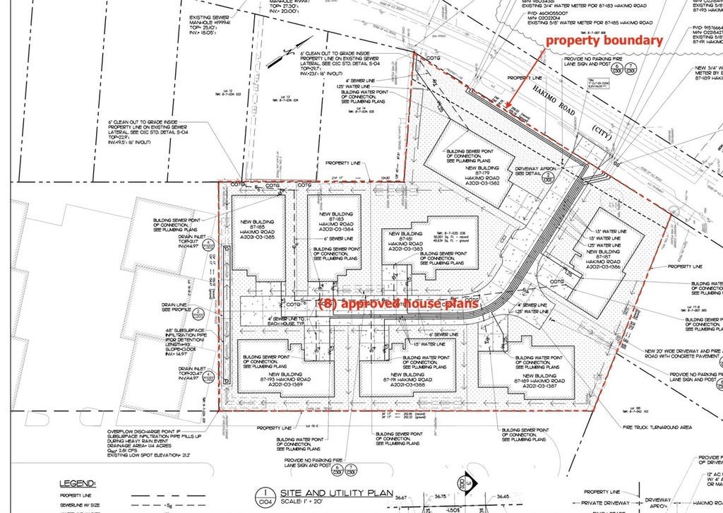 Huge price improvement! Land + (8) Approved house plans with permit fees already PAID and ready to build! This is a turn-key project! No need to wait 3 to 5 years for permitting. Eight (8) single-family dwellings already approved and permitted on this 50,001 sf fee simple property. The lot is currently being demo'd & cleared and ready for you to build (8) beautiful homes. Architectural plans and permitting information are available to share with qualified buyers. The eight approved DPP house permits are: #907345, #907351, #907354, #907356, #907671, #907673, #907678, and #907682. Each home is designed with 4bd/2ba, kitchen, dining, living room and a 2-car carport. The average living area per home is about 1,600 sf. All building permit fees paid for including sewer connection, water/fixture unit facilities, park dedication, building demolition, grading, house building plans. An incredible deal, under $250k per house lot.