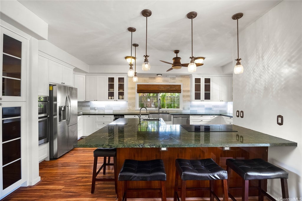 Welcome to your dream home in Lanikai! This beautifully maintained 6-bedroom, 4-bathroom gated estate offers the perfect blend of island charm and modern convenience. With a 2-car garage, freshly painted interior, and new split AC units throughout, comfort and elegance await you. Main house features 5 Bedrooms, 3 Full Bathrooms, 2 Spacious Living Rooms, expansive Kitchen with Pantry, Ample Cabinet Space & Extra-Wide Island Great for Entertaining. Interior Laundry Room, Outdoor Shower,