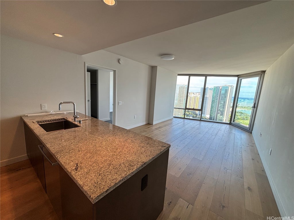 Ideal higher floor Even number stuck at luxurious Ae'o condominium, center of Ward area, connected to Wholefoods store, many nice restaurants near by. This unit has engineered wood flooring for living room, motorized window covering, deep bath tub, additional storage (23SQF, purchased at $15,000) on garage floor.