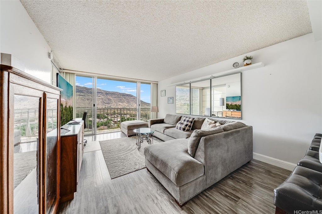 Experience the best of island living in this fully furnished 1-bedroom, 1-bath condo located at Makaha Valley Towers. Situated on the 9th floor, this home offers a comfortable open layout with vinyl plank flooring, central air conditioning, and sweeping views from the mountains to the ocean. The kitchen is equipped with modern appliances including a refrigerator, oven, microwave, dishwasher, and garbage disposal, plus the convenience of an in-unit washer and dryer. Located just five minutes from the beach, this home offers easy access to shopping, dining, and outdoor recreation. With its blend of comfort, convenience, and island charm, this condo is the perfect rental choice in Waianae. No pets allowed. Rent includes all major utilities water, sewer, trash, electric, internet, and cable so you can enjoy a stress-free lifestyle. The gated community provides 24-hour security and resort-style amenities such as a pool and landscaped parks, while an assigned parking stall ensures added convenience.