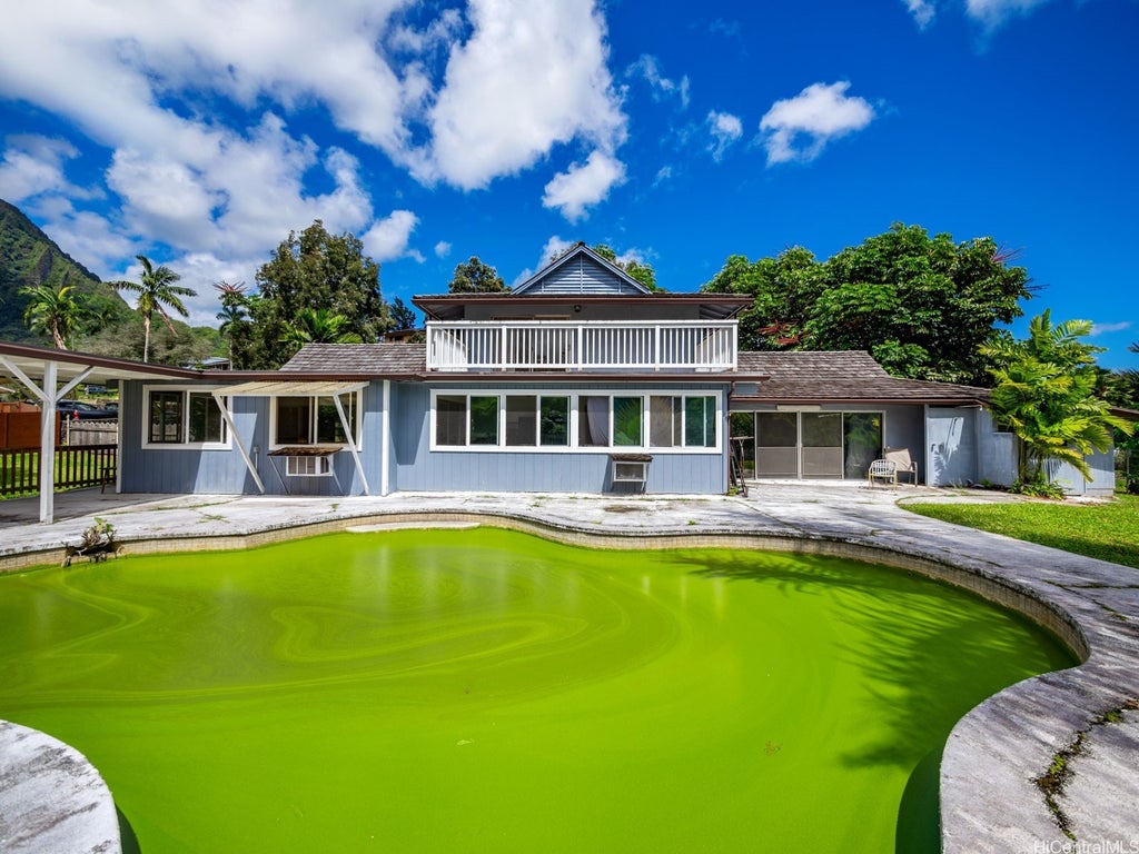 Rare opportunity in the desirable gated community of Haiku Plantation in Kaneohe. This 4-bedroom, 3-bathroom home sits on just over an acre, with lush tropical surroundings and stunning Ko'olau Mountain views. The property features a spacious layout, pool area, and lower terrace with a tennis court- all ready for a full renovation and brimming with potential. With a two-car carport, additional parking, and the privacy of Haiku Plantation, this is your chance to create a dream estate in one of Windward O'ahu's most private neighborhoods. Some photos have been virtually de-cluttered*