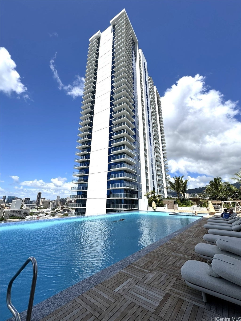 Be the first to live in this brand new unit located at The Park on Keeaumoku, Honolulu's newest residential landmark. Cozy living space of 606 sq. ft. and a 92 sq. ft. covered lanai, one-bedroom, one-bath, with one covered parking. Split AC units, floor-to-ceiling windows with mountain and city views. Quartz counter-tops, new stainless steel appliances, vinyl plank flooring, carpeted bedroom. Separate laundry room. Featuring resort-style amenities: Infinity pool, spa, sauna, cabanas, BBQ pavilions, gym, yoga room, movie theater, meeting/party rooms, 24-hour security and patrol, bike racks. Perfectly located near Ala Moana, shopping, restaurants, entertainment, and more. Utilities include water/sewer/trash, Basic Cable/Internet. NO Smoking! NO Pets! Renters Insurance Required! Minimum one-year lease.