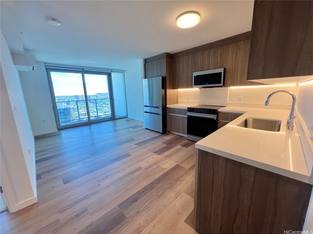 Live, Work, and Play at The Park on Keeaumoku – Liona Tower! Be the first to live in this brand-new 1-bedroom, 1-bath condo located on the 42nd floor with stunning views of the city skyline and Diamond Head. Includes 1 assigned covered parking stall. Water/Sewer included. Enjoy resort-style amenities, including infinity pool, multiple BBQ areas, Fitness Room, Sauna, Yoga Room, Movie theatre, Playground and more. Located near Ala Moana Shopping Center, Walmart, Sam’s Club, Target, Queen’s Medical Center, Kapiolani Medical Center, schools, cafés, and many dining options in the area. Rental Features: Refrigerator, Dishwasher, Microwave Range Hood, Washer/Dryer in unit, Split AC in Living Room and Bedroom, Lanai & 1 assigned parking stall. No pets or smoking allowed. Initial Term of Lease: Minimum 6 months