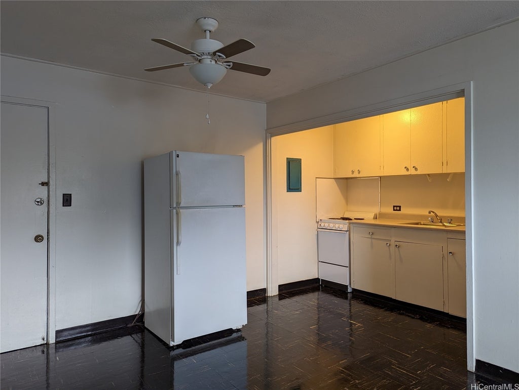 Second floor walk-up studio with no parking, conveniently located in the heart of Kailua Town at the intersection of Kailua and Kuulei Roads is available for rent. Many shops, take-outs, restaurants, banks, supermarkets, and bus stops are located within close walking distance from this rental. Ground floor tenants in this rental building include a Boba Tea/Coffee shop, an authentic Mexican take out, an urgent care clinic, and opening next year, a barber shop. This clean and recently painted rental unit is situated in a well-maintained building, with a coin operated laundry room, secured gated entrances, and security cameras in hallways. Furnished with range, refrigerator, ceiling fans, window AC. Floors are all vinyl. Rent includes water/sewer; tenant pays electricity, and at tenant option, cable TV and landline. NOTE: PARKING IS MONITORED AND RESTRICTED DUE TO COMMERCIAL BUSINESSES DOWNSTAIRS! Best for people with no vehicles. Parking is restricted Mon THROUGH Sat from 8:30am-5:30pm. Renter's insurance is required. No pets and smoking is not allowed in the unit and building. Application Fee is $27 per adult applicant.