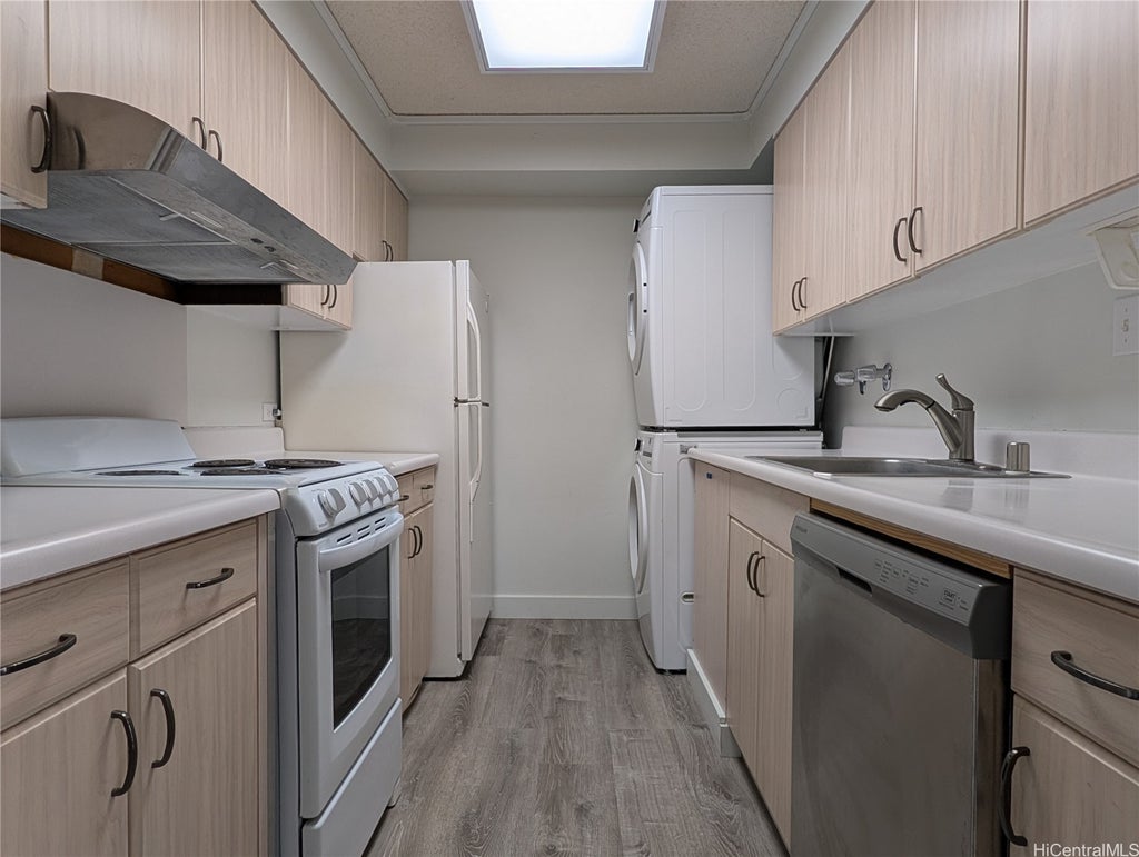 Spacious and freshly painted 1/1 with 1 covered and well-situated reserved parking stall is available in the Sakura. This clean and bright unit is conveniently located in Nuuanu, right up the road from Downtown Honolulu, Chinatown, with bus and nearby freeway access. There is newer vinyl plank flooring, and appliances include a range, refrigerator, dishwasher, 2 window air conditioners, ceiling fan, and in-unit front load washing machine and dryer. There is also a storage closet available for tenant use. Water/sewer is included, tenant pays electricity, cable tv/internet. Renters insurance is required, and no pets or smoking is allowed in the unit. **Disclosure...A plumbing replacement project is scheduled for this rental unit between May 26 - June 12, 2026. During this time, occupancy will still be allowed, and plumbing will be restored at the end of each work day, and Landlord shall reimburse Tenant a portion of rent.
