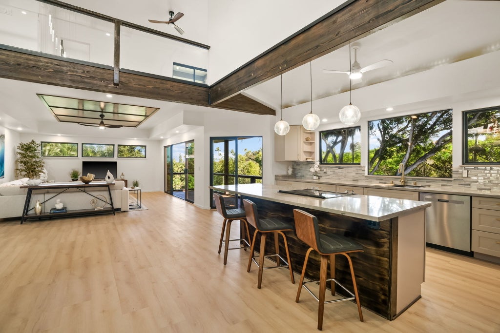 Nestled in one of Kauai’s most coveted neighborhoods, 3973 Kalakaua Place is a tri-level luxury estate crafted by renowned Kauai builder Mark Gauthier. This 5-bedroom, 4-bathroom home offers 3,770 square feet of meticulously designed living space that seamlessly blends contemporary elegance with Kauai’s natural beauty. On the first floor you will find the master bedroom and 2 guest bedrooms. The top floor and lower level also feature their own bedrooms and full bathrooms.