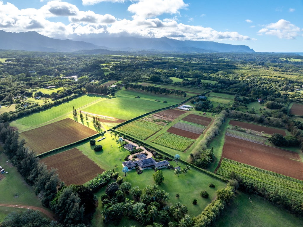 Discover an extraordinary opportunity to own a 44.63-acre property situated on the breathtaking North Shore of the Garden Island of Kaua'i. This stunning gated estate combines the elegance of a custom 4,824 sq. ft. Hawaiian-Japanese style home with the functionality of a thriving organic farm. Ocean, sunset and sunrise views are plentiful from many areas of the property. Just a short walk to one of the most incredible North Shore beaches!