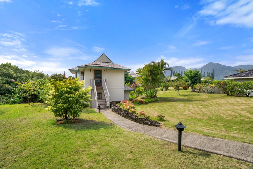 Welcome to Hanalei Bay Villa 24. This stand-alone, 2br 2.5 bathroom villa is set back to offer complete privacy, but is also located almost directly across from the Hideaways lookout. This active and successful vacation rental is offered entirely turnkey. Upstairs is the open concept kitchen, living and dining room with a new sliding glass door installed in 2023, an American Leather sleeper sofa, all stainless steel appliances, as well as a half bath renovated in 2024.
