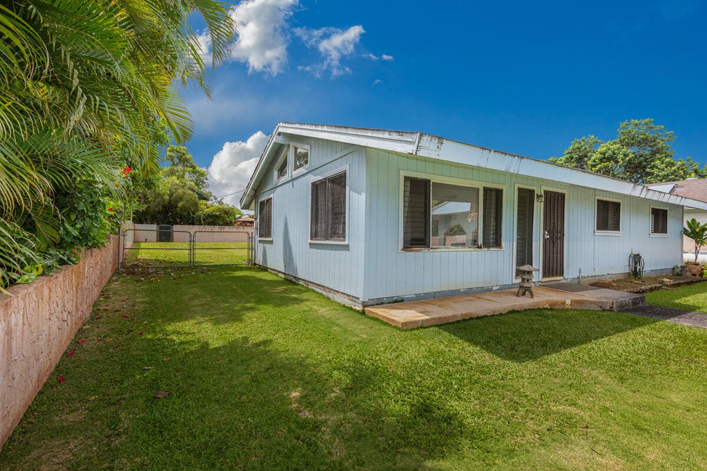 The property features a 13,155 sq ft lot with a 3-bedroom, 2-bath home and a detached 2-car carport. Please note: the existing home has extensive termite damage. Buyers may wish to consider demolition or embark on a significant renovation project. Clearing the current structure would create a blank canvas, offering incredible potential to redesign the lot — perfect for building multiple dwellings or rental units to maximize investment opportunities. According to the County of Kauai Planning Dept this lot qualifies for the existing main residence, an ADU, and 2 ARU's or 2 guest houses. The 2 guest houses or 2 ARU's (either/or, not both) would have a maximum of 800 sq ft each, can each have a kitchen and be rented, but all of the 4 dwellings combined must not exceed 50% lot coverage.