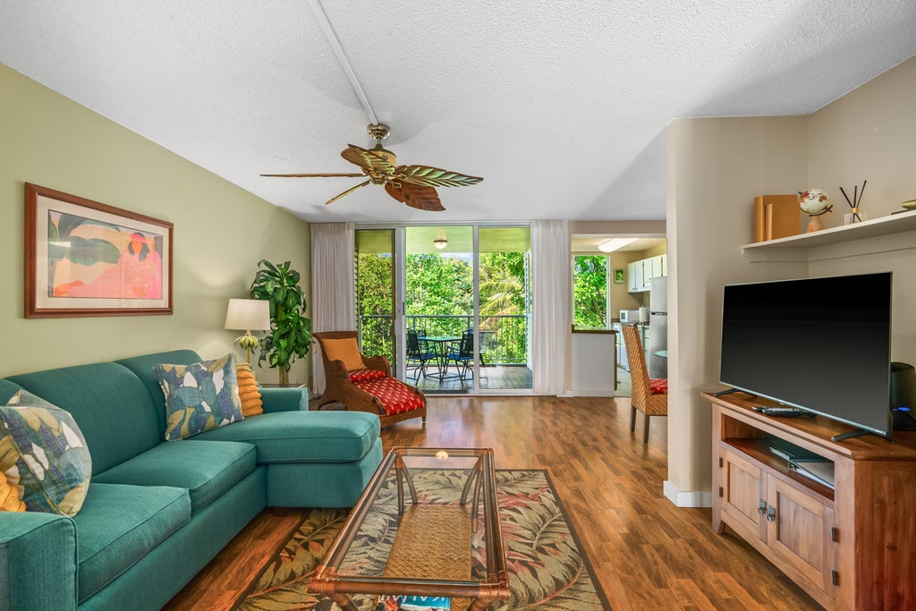 • Two serene, covered lanais surrounded by lush gardens and tropical birdsong