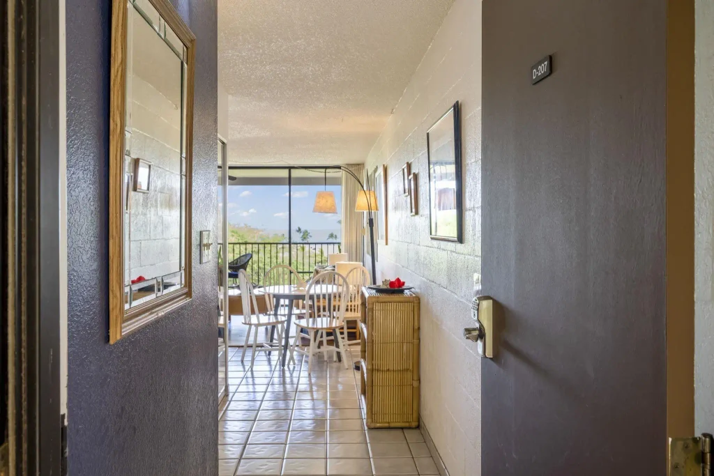 This roomy Hotel-zoned vacation rentable condo epitomizes the easy living that creates memories and brings visitors back to Maui, and Kihei Alii Kai, time after time. Highlights include an unusually spacious lanai, with an expansive view of a natural Maui landscape extending down to a sparkling blue sea, where guests or residents gather for meals prepared in the bright, clean full-service kitchen, and where whales often entertain them in season. The South Maui location provides easy access to the airport, and to the many exploration and outdoor recreation sites for which this fascinating island is known. There’s plenty to do in the immediate environs of the complex as well. Located just across the road, the justly famous white-sand Kamaole II beach with its lifeguard station offers an incomparable environment for swimming, snorkeling, paddle boarding and sunbathing. The lushly landscaped KAK complex also features a beautifully maintained pool and hot tub, pickle ball and shuffleboard courts, two barbecue areas, and an array of shops and eateries within easy walking distance. Days end with a refreshing shower in the newly remodeled, aesthetically pleasing bathroom that invites guests to linger and enjoy the experience.