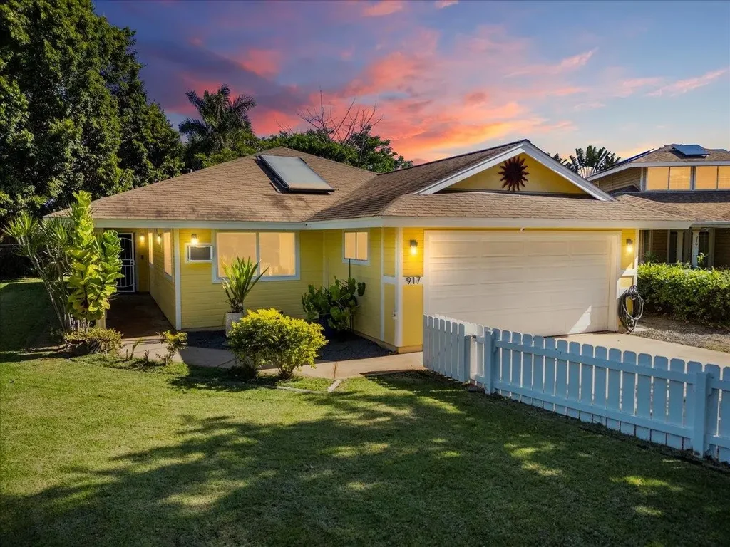 Nestled on a peaceful cul-de-sac in the sought-after Pi’ilani Villages neighborhood, this beautifully remodeled single-level Kihei home offers the perfect blend of comfort and modern elegance. Featuring three bedrooms and two bathrooms, the thoughtfully updated interior is designed for both everyday living and effortless entertaining. Step inside to an inviting open-concept layout, where vaulted ceilings and recessed lighting create an airy and light-filled ambiance. Striking vinyl flooring complements the warm color palette, while abundant natural light pours in through multiple windows, enhancing the home’s welcoming atmosphere. Designed for seamless indoor-outdoor living, the main gathering space flows effortlessly through sliding glass doors onto a private patio. The well-appointed kitchen is a chef’s delight, featuring an island bar with chic pendant lighting—ideal for casual dining or entertaining guests. Outside, the expansive backyard is a tropical oasis, complete with mature trees, lush greenery, and two raised garden beds. A spacious gazebo provides the perfect setting for al fresco dining and weekend gatherings. Modern upgrades enhance the home’s appeal, including a new 4-ton Lennox central air system, 24 seller-owned photovoltaic solar panels with two LG backup batteries. Additional conveniences include four exterior storage cabinets, providing ample space for outdoor gear and essentials. This exceptional Kihei residence is move-in ready and offers the perfect combination of style, comfort, and convenience.