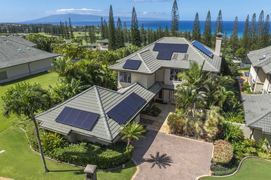 Welcome to Pineapple Hill, where elegance meets the effortless beauty of Maui’s world-renowned Kapalua Resort. Perched in one of Maui’s most sought-after communities, this gracious home offers breathtaking panoramic ocean, island, and sunset views, seamlessly blending indoor and outdoor living. The expansive living room opens to sprawling covered lanais, creating an ideal setting for entertaining or tranquil relaxation. Enjoy the pool and spa, where whale-watching and Maui’s famed sunsets become part of your daily routine. Upstairs, you’ll find three luxurious bedroom suites, including a primary retreat with a private lanai, elegant sitting area, spacious walk-in closet, and spa-inspired ensuite featuring a soaking tub and oversized shower. Modern upgrades ensure efficiency and sustainability, including 62 solar panels, four Tesla batteries, new AC, plush carpeting, and designer blinds. Located within the gated community of Pineapple Hill, residents enjoy access to resort-style amenities, including a clubhouse, pool, tennis & pickleball courts, and dedicated on-site management. Amenities in Kapalua include some of Maui’s finest beaches, award winning dining, and the world-famous Kapalua Plantation & Bay golf courses. Offered furnished including original artwork.