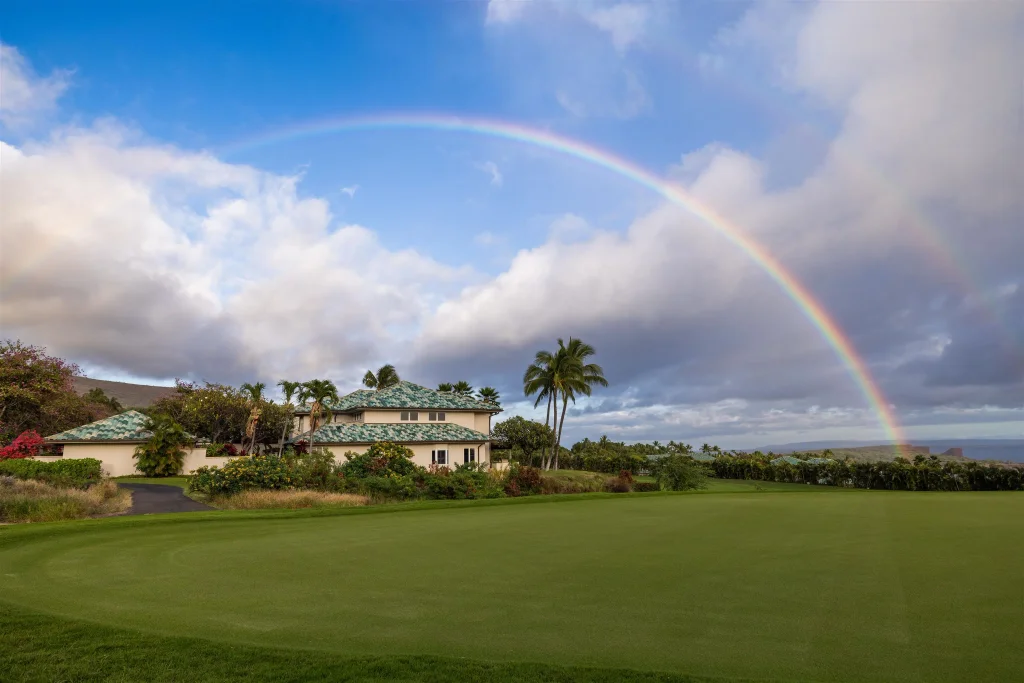 Own a slice of paradise on Hawaii's most unique, discreet, and private island. This highly coveted End Unit is a two-story, 3 bed/3.5 bath oasis with a 2-car garage and tropical courtyard providing exceptional privacy and generous square footage. Dramatic high ceilings bring nature and light to the inside. Beautiful kitchen with Sub-Zero fridge, Thermador double wall ovens & range, and outdoor Viking built-in BBQ. Located on the 9th fairway with unobstructed ocean views, including the iconic Sweetheart Rock. Enjoy whale and dolphin sightings right from your bedroom balcony or while entertaining guests on your outdoor lanai. Sunrise is a daily ritual from nearly every room in the house and the outdoor shower takes bathing to new heights. The four Seasons Hotel and Hulopoe Beach at Manele Bay (a marine sanctuary offering outstanding snorkeling) are just a short walk or golf cart ride away. Island Club membership is available for purchase, granting access to two Four Seasons Resorts and their amenities including unlimited golf at Hawaii's #1 ranked course, tennis, pickleball, spa treatments, wellness classes, gym facilities, dining, and other hotel privileges. This furnished, turnkey property is only one of 12 end units in the entire Manele Bay Development has been very well maintained and has never been rented. A true find in a highly desired market. For virtual tour visit: https://www.youtube.com/embed/klD-MgNTK8E?si=Fh5oR02RmdBvCOGG