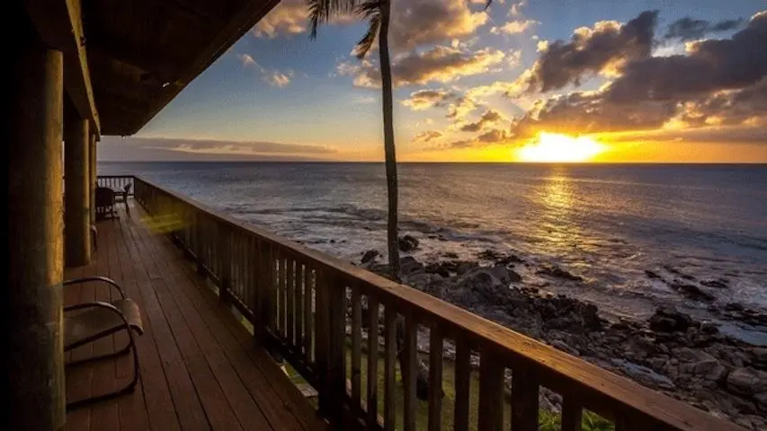Are you ready to swim with turtles instead of mowing the lawn? The Pacific is your front yard in this artistic Polynesian pole house with ocean access and over 100 feet of dramatic ocean frontage in Napili. Located at the tip of the point in the private gated community on Papaua Place with only 10 homes and super low homeowner's fees of $500 annually. Enjoy year-round sunsets and sweeping 270 degree views from the islands of Lanai and Molokai up to Kapalua from the large wrap patio. Surfing, snorkeling with turtles, swimming and whale watching right out front, depending on the seasons. Wake up to surf views and sounds of the ocean from the primary and guest bedroom. Home designed by Frank Stiller and built in 1981 for Maui restauranteur Rob Thibaut (Duke's, Kimo's) using Hawaiian Koa wood and lava rock. This unique property includes a game room, sauna, jacuzzi and upstairs whale watching/yoga room/study. Close to world-class golf, spas, hotels, restaurants and Honolua Bay. Life doesn't get better than this!