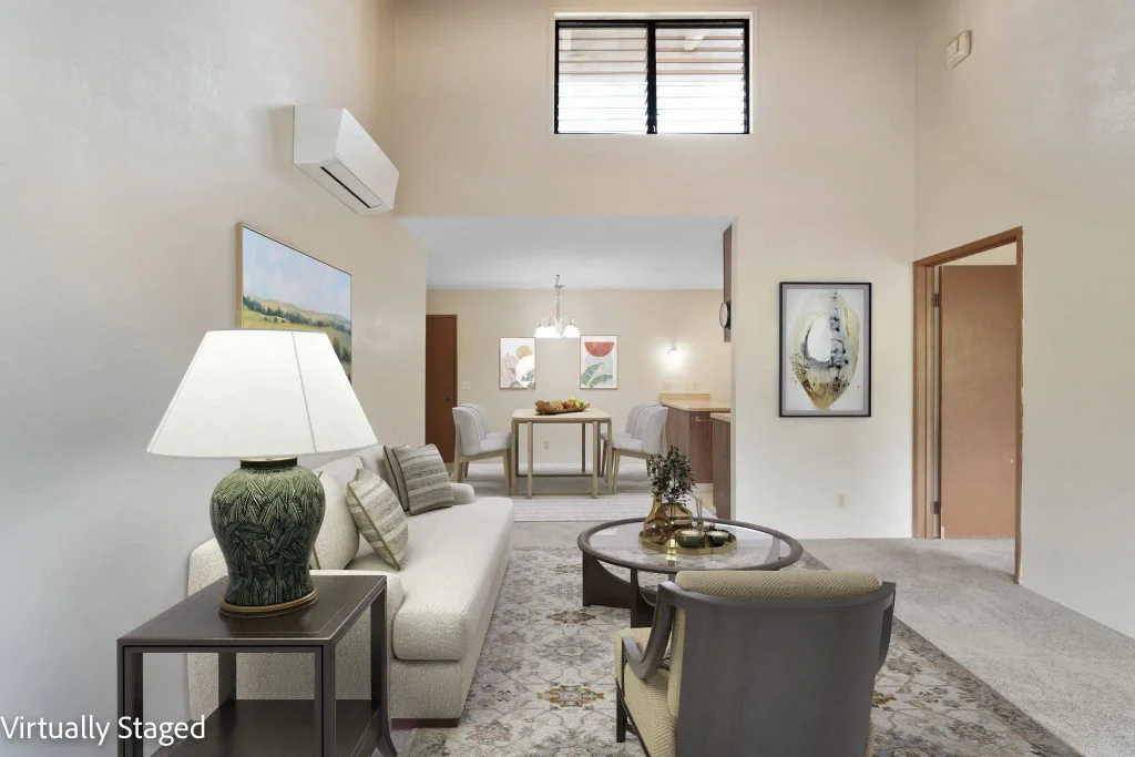 Top-floor living in the heart of Wailuku! This 2 bed, 2 bath condo features vaulted ceilings, a split AC system, and a bonus loft perfect for extra storage, guests, or a cozy retreat. Brand new carpet adds a fresh touch, and with two parking spaces included, convenience is key. Enjoy cool breezes and a majestic panorama of the West Maui Mountains. The secure, service-animal friendly building offers elevator access, a pool, BBQ area, and covered parking. Monthly dues include water, trash, sewer, high-speed internet, and Spectrum cable TV. Just moments away, explore a variety of local eateries, cafés, shops, and all the charm of Wailuku Town. Walk to work! The County buildings, Maui Medical, the Court and all professional firms in Uptown Wailuku are right there.