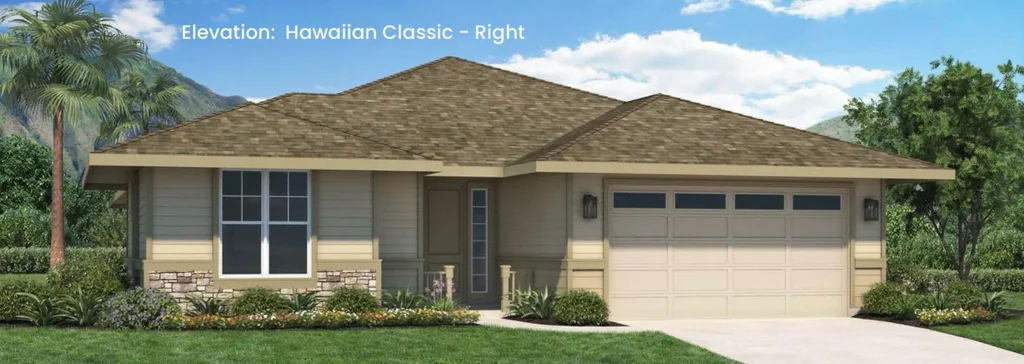 WELCOME HOME! This BRAND-NEW home is located in a highly desirable new community, The Parkways at Maui Lani-Phase 5. This is our final phase. Conveniently located in the Maui Lani Master Planned Community. The community has close proximity to many walking & hiking trails, medical facilities, the airport, shopping, beaches and schools because of its central location. The very popular single level, P4 floor plan is a welcoming 3 bedroom and 2.5 bath with approximately 1,965 s.f. of living space. All homes within our community include 9-foot ceiling, 8-foot custom doors and large sliding glass windows. Additional bonus features include laundry room, exterior insulation, solar hot water heater, and a finished three car garage with two-car tandem configuration on one side. The home will also include a private E-one sewer system. This home has many upgrades including, upgraded tile in bathrooms, LVP flooring upgrade in great room, designer carpeting in bedrooms, EV receptacle with 50 AMP breaker in the garage for electric vehicles, PV prep ready, LED lighted mirrors in all bathrooms, Refrigerator, washer & dryer and custom drop zone. Estimated completion is Oct/Nov 2025. All information subject to change at any time. Photo is for illustration purposes only and is not of the actual home. This home is still under construction. The exterior finish may be different than the finish in photo shown, actual home may be of reverse floor plan.