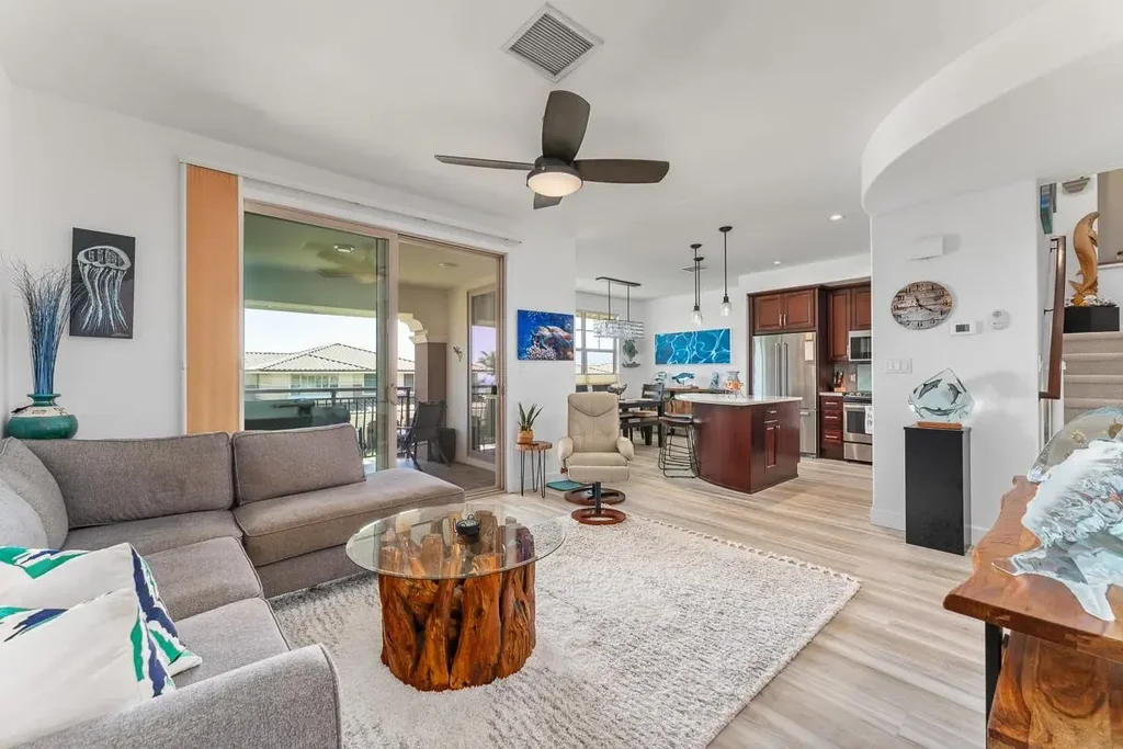 Within The Villas at Kehalani, you will find a beautifully appointed townhome located at 66 Awela Circle, #2803. This stunning residence boasts an array of custom features designed to enhance your living experience. Step inside to discover rich luxury plank flooring that flows throughout the main living areas including closet spaces, complemented by elegant custom tile work in the bathrooms, quartz countertops, new Kohler plumbing fixtures, custom installed sinks, crystal cabinet door pulls upstairs, and stainless steel cabinet door pulls downstairs. This home is equipped with upgraded fixtures that provide a modern, polished touch, while the complete whole-house water conditioning system along with water softening enhancement ensures the highest quality of water throughout the home, along with a 5-stage reverse osmosis purifier in the kitchen. Stylish upgrades also include New stainless over the range microwave, New stainless dishwasher, and complete fresh new paint job for all interior walls and ceilings. One of the coolest enhancements is the Newly installed UV-C light sanitizer within the Central AC ductwork. Additional highlights include upgraded lighting that sets the perfect ambiance, and a home that has been meticulously maintained with thoughtful care and attention to detail. The open floor plan and spacious layout make it an ideal space for both relaxation and entertaining. Don’t miss the opportunity to call this luxurious townhome yours – schedule a private tour today! (All photos were taken while the home was still occupied. Owners are now completely moved out.)