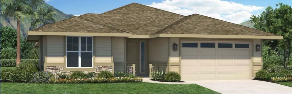 WELCOME HOME! This BRAND-NEW home is located in a highly desirable new community, The Parkways at Maui Lani-Phase 5. This is our final phase. Conveniently located in the Maui Lani Master Planned Community. The community has close proximity to many walking & hiking trails, medical facilities, the airport, shopping, beaches and schools because of its central location. The very popular single level, P4 floor plan is a welcoming 3 bedroom and 2.5 bath with approximately 1,965 s.f. of living space. All homes within our community include 9-foot ceiling, 8-foot custom doors and large sliding glass windows. Additional bonus features include laundry room, exterior insulation, solar hot water heater, and a finished three car garage with two-car tandem configuration on one side. The home will also include a private E-one sewer system. Estimated completion is Fall 2025. This home has many upgrades including, upgraded tile in bathrooms, LVP flooring upgrade in great room, designer carpeting in bedrooms, EV receptacle with 50 AMP breaker in the garage for electric vehicles, PV prep ready, LED lighted mirrors in all bathrooms, Refrigerator, washer & dryer and custom drop zone. All information subject to change at any time. Photo is for illustration purposes only and is not of the actual home. This home is still under construction. The exterior finish may be different than the finish in photo shown, actual home may be of reverse floor plan.