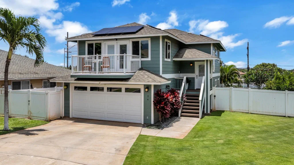 Welcome to 24 Wawali Street—a spacious and serene 4-bedroom, 3-bathroom home offering 1,808 sq. ft. of living space, perfectly situated at the end of a quiet cul-de-sac in one of Kihei’s most desirable neighborhoods. Just minutes from Kihei and Wailea's stunning beaches, many popular shopping spots, and a variety of local restaurants, this home offers both tranquility and convenience. Located within a mile of four schools serving all age levels, it’s an ideal setting for families. Step outside to a large fenced-in yard set on a lush lot filled with mature tropical landscaping, this property is a true Maui retreat. Enjoy fresh fruit from your own avocado, calamansi lime, and tangerine trees, or relax in the shade of vibrant maroon plumerias surrounded by natural greenery. Designed with comfort and efficiency in mind, the home includes a leased solar panel system with battery backup—helping keep energy costs low while adding sustainability and peace of mind. The flexible interior layout features bright, breezy spaces perfect for families, entertaining, or working from home. This home features a unique upper lanai ideal for relaxing, dining or just enjoying the beautiful Maui weather . Recent upgrades include brand new flooring throughout the home, newly installed front stairs and a brand-new garage door with opener, enhancing both curb appeal and functionality. A standout feature is the extra gated parking area within the fenced yard—large enough to accommodate a boat or two additional vehicles—a rare and valuable perk in this area. Experience the best of Maui living in this move-in ready home that combines tropical charm, smart upgrades, and an unbeatable location close to everything Kihei has to offer.