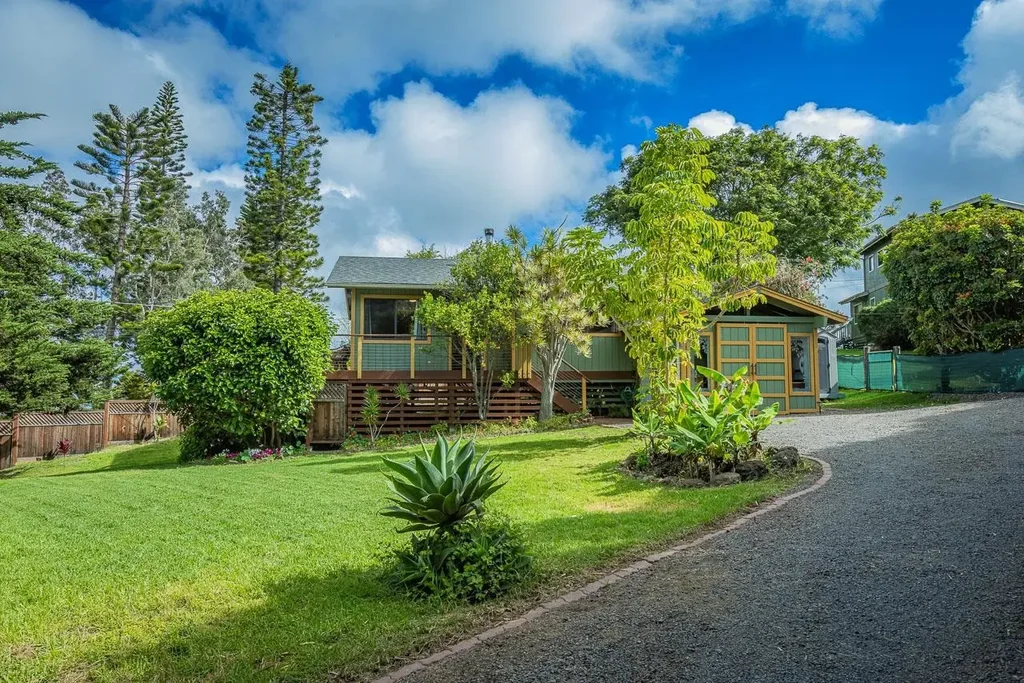 There’s a kind of magic to life in Kula, the golden hush of sunset stretching across the lanai, the sweep of clouds over Haleakala’s summit, and the deep breath of calm that comes with panoramic island views from every angle. At 332 Kolohala Drive, you don’t just take in the sunset, you live inside it, with a wraparound lanai designed to make the most of every golden hour. You don’t just see Maui… you feel it. This gated single-family CPR’d retreat is a sanctuary of serenity, cradled in the heart of Kula, where the climate is as gentle as the breeze and the views are simply unforgettable. From the top of Haleakala to the islands of Kaho'olawe, Molokini, Lana'i, and beyond, the 180-degree panorama from the expansive wraparound lanai invites you to slow down, breathe deeply, and savor the art of everyday living. With a newer awning for shade and comfort, sunsets here unfold like living paintings: fiery, soothing, and always extraordinary. Inside, recent renovations bring thoughtful design to every space. The kitchen features soft-close cabinetry, a recessed refrigerator for added space, matching appliances, and a striking double copper farmhouse sink. A new range, sliding glass door with built-in blinds, fresh paint, and split AC system throughout the home provide everyday comfort with a refined touch. Vaulted ceilings and large windows invite in light and views, making the two-bedroom, one-bath layout feel even more open and airy. A cozy wood-burning stove adds charm to cooler nights, while Senville mini-split units in every room offer quiet, efficient climate control. These thoughtful upgrades, including a 2019 roof replacement, make the home feel as solid as it is stylish. A converted, enclosed carport adds a flexible bonus space: behind custom etched-glass windows and sliding barn doors lies a light-filled studio complete with sink, ceiling fan, cabinetry, and a brand-new high-capacity washer and dryer. Whether it becomes your creative retreat, remote office, or meditation space, it’s designed to adapt to your lifestyle. Outdoors, the home is surrounded by vibrant landscaping: native hibiscus, colorful mandevilla, fragrant angel wing jasmine, and fruiting apple bananas and tangerines. Bamboo and ironwood hedges provide privacy without compromising the views, and a large grassy yard offers space for children and pets to roam freely. Two separate storage areas: one raised with electrical access, the other a spacious 8x28 ft area beneath the deck, make it easy to keep life beautifully organized. For those seeking a refined yet grounded Upcountry lifestyle, 332 Kolohala Drive is more than a home, it’s an invitation to live in harmony with everything that makes Maui magical. Conveniently located near respected schools, scenic hiking trails, Kula’s charming cafés and farmstands, and Ali’I Lavender farm, this is a place to breathe deeply, create freely, and feel truly at home.