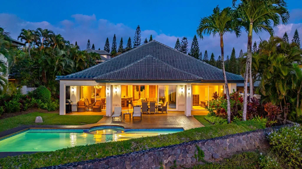 Stunning ocean views! Gorgeous sunset views and neighbor Island views can be yours from this beautiful ocean view single-floor Pineapple Hill home. This home was remodeled in 2020 with bamboo floors throughout and new tile floors in the bathrooms. The living room, dining room, and primary bedroom feature 8-foot high sliding glass doors. Upgrades in the kitchen include a new center island along with new and refaced kitchen cabinets. There is a bar with dual wine refrigerators and all-new kitchen countertops, along with a Thermador stove top, oven, and microwave. A new KitchenAid refrigerator was also added. The new custom wood and glass front doors allow you to see right through the home, offering a view of the ocean and the neighboring islands of Lanai and Molokai. 2 walk-in closets are featured in the primary bedroom, and 1 in the secondary bedroom. A new standing tub was added along with new ceiling fans and much more. This is a must-see in person! The exterior of the home was repainted and completed in 2024. The pool was replastered in 2020, and the stamped concrete repainted in 2023. The home has an owned photovoltaic system. Call your agent today to schedule your viewing of 406 Monarch Place, which is on a very private cul-de-sac. Pineapple Hill is a gated community in the Kapalua resort, close to dining, hiking, and world-class golf courses.