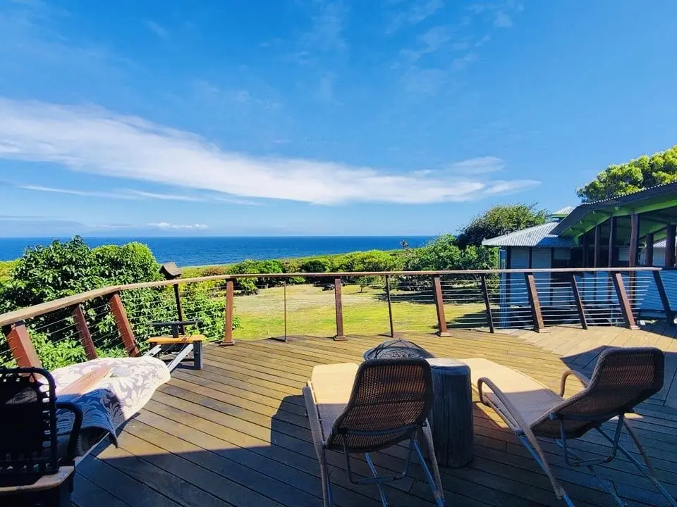 “Waterfalls, Rainbows and Gorgeous Ocean Views”… Experience the abundance of these visual delights from the privacy of your extra large lanai. Full moon rising, endless stargazing, and unobstructed Big Island Views, just to name a few aspects of this serene and blessed estate known as, Pu’uhonua”, Place of Refuge. This 1,520 sq ft home with an expansive covered and uncovered lanai, being thoughtfully designed to connect indoor and outdoor, which creates a seamless flow of natural environment living. Having been cared for with loved holistic bio-dynamic land cultivation methods and practices. This Estate features a spacious and manageable 1.72 acres. Whether your intention is to install a helipad, or to grow additional food, the opportunities are almost endless. A peaceful Life away from the busy world. Operating completely off grid and self-sustaining with an Owned Photovoltaic Electrical system, 6KW 240VAC, Single Phase. Sixty five solar panels and new gel, no maintenance, batteries installed April 2025 by Ray Meyers, Solar. When needed, switch on Star-link, which is currently used for seamless internet connection, or connect to underground phone hard-line, at the top of the property. 200 sf foot Bali Hale to host visiting family and friends. 20K Gallon water catchment tank for fire protection standpipes, with pumps, and a high quality drinking water filtration-purification system. 200 sf storage/office with Photovoltaic building, and much much more... Views - Massive Ocean, Haleakala, Big Island and it's amazing volcano views, and whales gathering. Ocean and mountain views (Haleakala and Big Island). Hear the whales calling as they gather at the mouth of the Manawainui Stream as it enters the Pacific Ocean. Great Kaupo Community, wonderful feeling of neighborliness and support. Such a rare offering in a peaceful environment, and an amazing place to call home. Call your favorite Realtor!