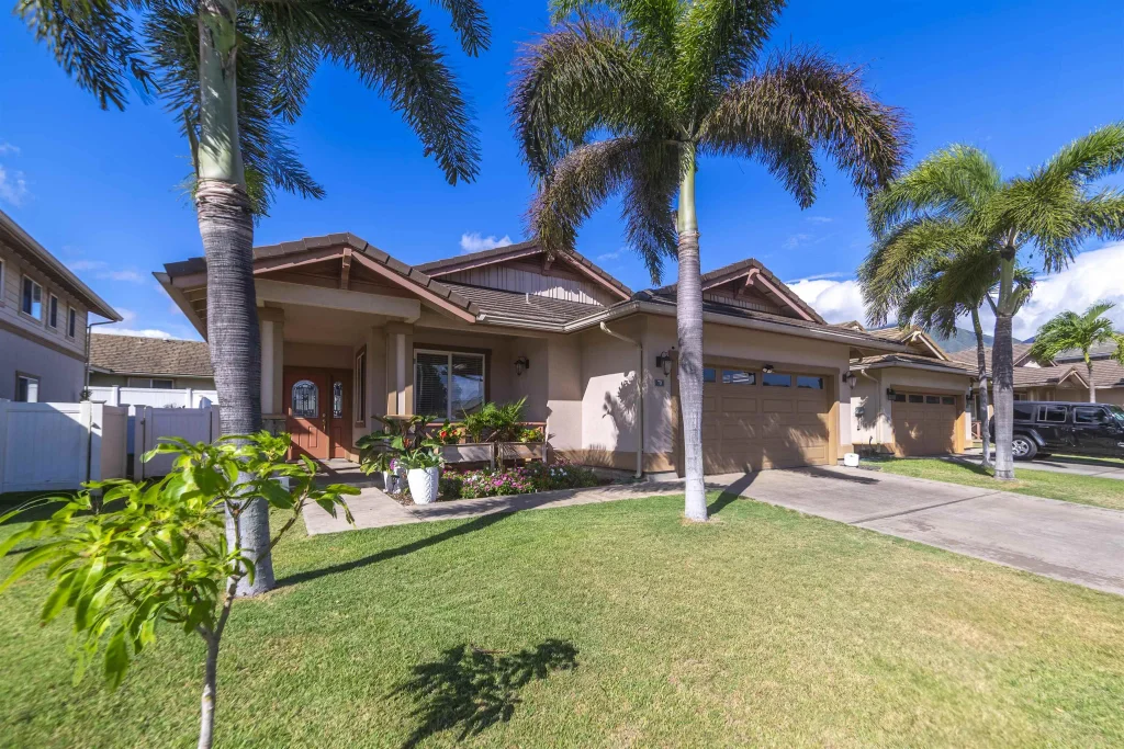 Experience single-level living with this stunning, meticulously cared-for home in Na Hoku at Maui Lani, a truly coveted neighborhood. Offering 1,832 square feet of thoughtfully designed one-level living space, this residence features 3 bedrooms, 2 bathrooms, an office, and comes furnished. Step inside and be greeted by a light and airy open floor plan, enhanced by vaulted 9-foot ceilings that create a wonderful sense of spaciousness and distinctive architectural arches that add character and charm. Luxury vinyl plank flooring flows throughout the entire home, providing both elegance and durability. The living areas flow seamlessly to the dining area and open kitchen, high-quality stainless steel appliances, elegant Corian countertops, stylish wood cabinetry, a convenient large pantry, and a bright eat-in area on the kitchen island ideal for casual meals. You'll also appreciate the ample storage options and thoughtful built-in shelving found throughout the home, keeping everything organized and easily accessible. The primary bedroom is complete with a luxurious ensuite bathroom featuring a separate walk-in shower, a relaxing soaking tub, and double vanities. You'll also find a sizeable home office, offering ample space for productivity, creative pursuits, or a potential fourth bedroom. Extend your living space outdoors into the fenced backyard offering an easier to enjoy space for outdoor activities. The durable tile roof provides lasting protection and curb appeal. Enjoy modern conveniences including central AC, an in-house laundry room equipped with a washer and dryer, and an attached garage with direct access. This residence is ideally situated near Pomaika'i Elementary School, the expansive Central Maui Regional Sports Complex, and local favorites like Fuego Argentinean Restaurant and The Dunes at Maui Lani Golf Course & driving range. Your dream home in Na Hoku at Maui Lani awaits, inviting you to experience the best of Kahului living – beautifully maintained and ready for you!