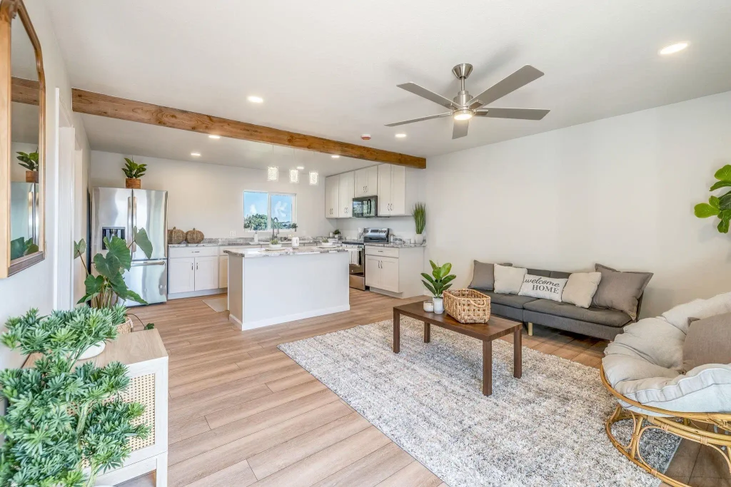 This is not a drive by...Fall in love with this beautifully re-designed and updated 3 bedroom, 2 bathroom home with an office/den, perfectly move-in ready and waiting for you! Thoughtful upgrades throughout provide a fresh, modern feel while maintaining comfort and functionality. Enjoy stunning views of majestic Haleakala and the West Maui Mountains from the deck/lanai, creating a serene backdrop from morning to sunset. Centrally located, this home offers unbeatable convenience—just minutes from schools, shopping, restaurants, and the airport, making it ideal for both everyday living and commuting. With its blend of style this home offers two bedrooms a full bath, family room and a den downstairs. The primary bedroom with full bathroom upstairs, with ease of access to the Kitchen, living room and deck. This property is the perfect place to call home. No Association fees and plenty of parking are a Bonus!