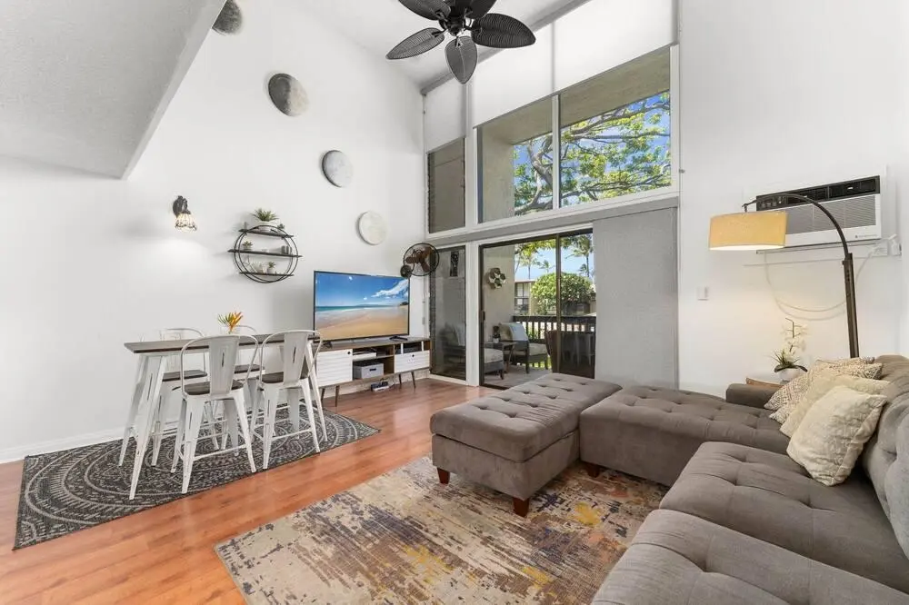 PRICED TO SELL! SEE IT NOW! ALOHA and E komo mai (Welcome) to your slice of paradise in the heart of Kihei! This beautifully appointed 2-bedroom, 2-bathroom condo spans two levels and exudes contemporary charm with high ceilings, an open and airy layout, and lush tropical views that invite the outdoors in. Property highlights include Loft-style upstairs primary bedroom adds architectural flair and openness; Bright, spacious living area with soaring ceilings; Tastefully furnished with modern coastal vibes; Wall AC units for year-round comfort; Manicured grounds with pool, jacuzzi, and serene lawns; Priced to sell – exceptional value in a prime location; Steps from downtown Kihei’s eclectic dining, food trucks, and shops, Times Supermarket, Post office, St Theresa's Church and just a stroll away to the popular Kihei 4th Friday event, local theater, and Kihei aquatic center. You'll love the hidden sandy beach conveniently located across the street to enjoy daily sunset strolls and whale watching in season! Currently, operating as a successful vacation rental with strong bookings, this unit is perfect as a primary residence, second home, or income-generating property. This is your chance to Live the Kihei Beach Life – where convenience meets tropical tranquility! Call your fave realtor today, EZ to show between guest bookings! #MauiLifestyles #BeachLife