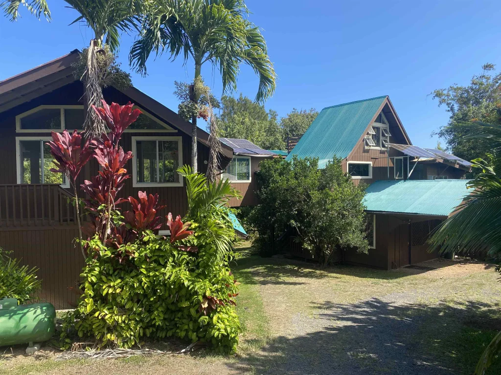 A beautiful tropical oasis in the country, with 2 off-grid homes on the ocean side of the Hana Highway. Very private and self sustainable, with updated solar power, catchment water and a perennial stream. Grow your own food. Fiber optics. Propane delivery service. No HOA. Not a CPR. Electric gate. The Ulalena Loop neighborhood near Twin Falls offers a country lifestyle that's only about a 15 minute drive from all the conveniences of the north shore towns of Haiku and Paia. Walk or drive to the natural swimming hole/waterfall at Ho'olawa Stream. Housing: The 2-story main house has a flexible floor plan with room for everybody. It feels like 2 homes with a covered walkway joining them. Climb up to the loft with a mountain view deck. Brand new kitchen appliances. Old fashioned hardwood floors. Bathrooms with jungle views. The detached cottage has living quarters accessed from one level, and a garage below. Lots of room to park and turn around on the paved driveway. Both homes have been recently re-roofed. Grounds: You get a lot of bang for your buck on this 1/3 acre home-site. The smaller lot means less upkeep, but you'll enjoy lush plantings, exotic flowers and fruit trees. Behind the gated entrance lies a nature filled sanctuary, like a breath of fresh air. Mature fruit trees include: avocado, citrus; banana, papaya, lilikoi, mangosteen, egg fruit, longan, Suriname cherry, ice cream bean. Colorful tropical flowers everywhere you look. You can feel secure here with so many sustainable features like independent utilities and nature's bounty. Stay and get comfortable, you won't need to go anywhere. Very few neighbors, adjacent to 60 vacant acres.