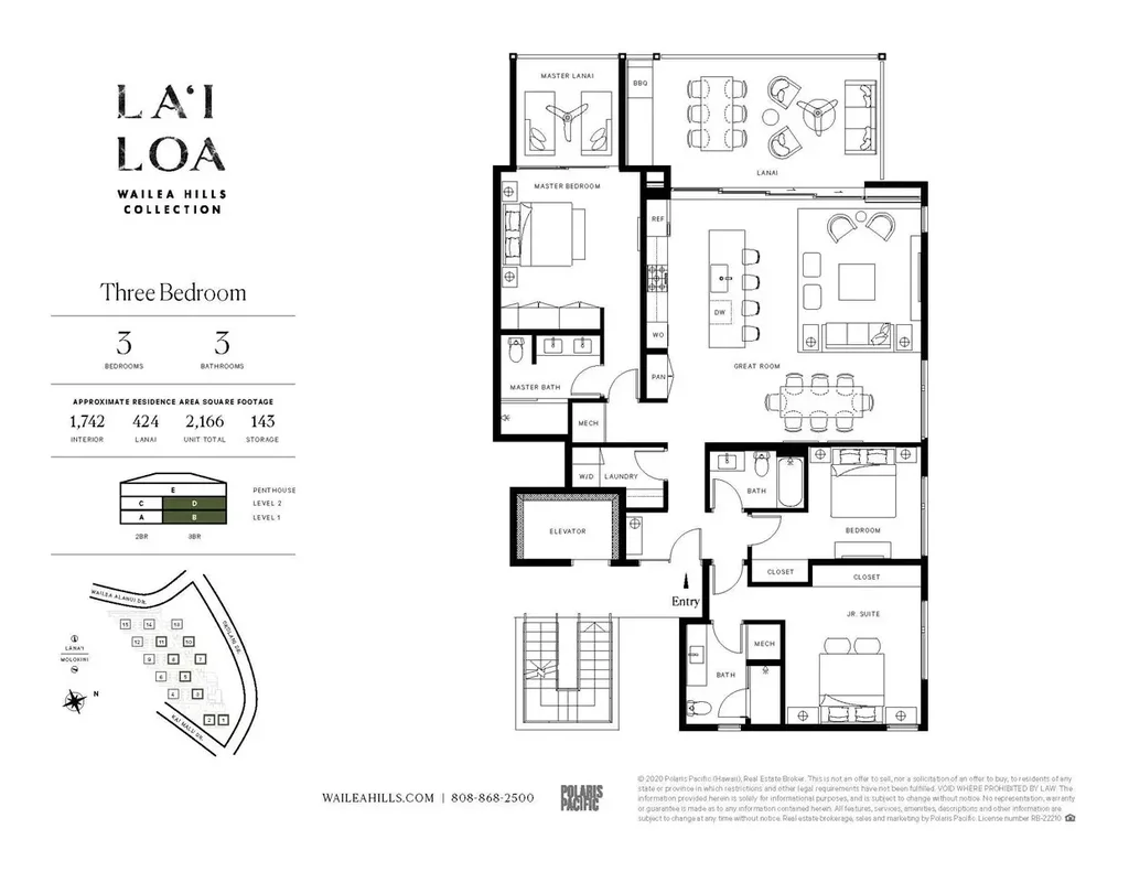 This three bedroom home features an open and airy floor plan of approximately 1,746. A timeless color palette is warmed by subtle textures and clean, contemporary lines for a visual kinship with the surrounding landscape, while premium design elements such as quartz countertops elevate each home to a sophisticated place. Defined by a signature sliding window wall in the great room and a generous ocean-facing lanai, each residence embodies casual island elegance and a truly seamless sense of indoor/outdoor living. Sanctuaries within a tranquil island escape, the bedrooms of La’i Loa are spacious and sublime in a warm, coastal color palette. This three bedroom villa offers a full master suite with a 112- square-foot private lanai from which to indulge in dramatic ocean views in unparalleled intimacy, in addition to both a guest suite and junior suite with en-suite bathroom. Clean lines and a bright, simple color palette compose the sense of serenity found in the bathrooms, contrasting beautifully with the brilliant color and life found just outside. A striking vanity with luxurious tile accents in the master bathroom suite adds a sublime touch of understated luxury to the everyday. Facing west on the makai side of each building, the lanai embodies the magic of indoor/outdoor living with 312 square feet of outdoor living, built-in BBQ and dramatic views of the ocean and neighboring islands of Kaho’olawe, Molokini and Lana’i. This home also enjoys an additional 112-square-foot lanai off the master suite for a sense of private relaxation. Pictures used are developers renderings and not unit specific. Information is deemed to be reliable but not guaranteed.