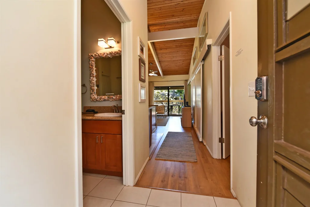 Opportunity knocks for this spectacular upper level 2- bedroom 1 bath Pohailani treasure. The seller took utmost care in refurbishing this vaulted ceiling, front row, sunny apartment in 2016, when she bought it. It has been used as a vacation rental since the seller bought it, so it’s turn key, furnished, and ready for the next lucky owner. Short term rentals are no longer allowed in these cottages, so an excellent opportunity to own your personal residence, or long- term rental in the heart of Kahana. The apartment sits on the Lower Road portion of the property, and the front door landing has peekaboo ocean views, in this darling garden view retreat. The unit has been painted and decorated with tropical beaches, and verdant landscapes as a theme. The upper units in this phase feature a vaulted living area, which lends to a sense of space, invites the natural light, and blends in with the lush gardens in this well -maintained property. There is an in- ground swimming pool, an assigned parking place, mail boxes, and grounds which invite calm, and natural beauty. A beautiful place for children to run and frolick in the lovely garden and pool!! The Main Bedroom features a loft, which is wonderful for storage, or an extra guest bed. The configuration of this phase of Pohailani include individual wood duplex apartments, with wonderful Tradewind circulation, and mature tropical vegetation, making this slice of Kahana a wonderful place to call home. There have been some recent construction and sea wall repairs, which will be cited in the home owner’s documentation, while completing your due diligence. Seller’s Disclosure, Condo Documents, including minutes to the meetings, CC&R’s, financials, and reserve study, and inventory will be provided through escrow. An appointment is necessary to view this property. If you intend to purchase using financing, you must use a licensed Hawaii Lender, and be prepared to provide a pre-approval letter, and show proof of funds, in order to submit an offer.