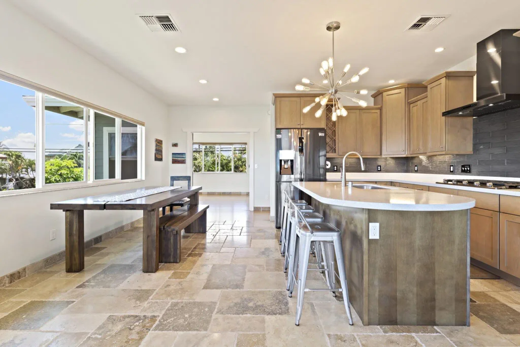 Exceptional Ocean and Mountain Views will captivate your attention in this custom crafted house and cottage just moments away from the beach! Finished in 2018, this unequivocal masterpiece features luxury and quality at its finest. Turkish Travertine & Bamboo flow seamlessly through this exquisite 4 Bedroom | 3 Bath home with an attached 1 Bed | 1 Bath Ohana. The Chef’s kitchen boasts top of the line appliances, soft close cabinets, gas stove, quartz counters and an invitation to make new memories. An expansive covered deck creates an opportunity to enjoy endless moments gazing off into the Pacific while embracing Haleakala Views. The premier bedroom, privately nestled on its own wing, surrounded by magnificent views, a generous en-suite bath with a stunning walk in shower and easy access to the lanai. Dual pane windows, recessed lighting, central air, an upstairs laundry room, outdoor shower, and solar hot water all add to the desirability of this exquisite abode. The flexible floor plan allows for privacy on the lower level granting access to the backyard and outdoor entertainment area as well as your 2-car garage. The 492 ft.² single level Ohana is perfectly poised in a quiet location and fully equipped with marble counters, full kitchen, laundry, and an outdoor space. The low maintenance, fully fenced yard provides a beautiful array of plants, flowers, herb garden, and fruit trees including papaya, lilikoi, banana, and so much more. Located in a fabulous neighborhood with no HOA and close to beaches, schools, shops, restaurants, theater, parks, and a plethora of other activities! Truly a pleasure to show. Call your favorite realtor today and schedule a private showing.