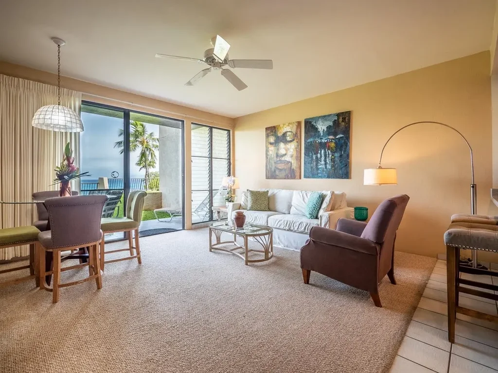 This property is truly the corner of paradise on Maui that you have been dreaming about. This one bedroom and one bathroom has stunning views of Honokeana Bay with Molokai as a backdrop. Honokeana Bay is home to amazing snorkeling where you will encounter sea turtles, plus diving and surfing that Maui has to offer. Ceramic tile floors in the entryway, kitchen, and bath vanity area. Floors are carpeted in living room and bedroom. Beautiful walk-in shower. Kitchen appliances are stainless steel. On the lanai you can watch the whales (seasonal) and turtles, surfers, and snorkelers. There is an owner's storage closet for you to store your personal belongings. Equipped with an AC unit in the bedroom, the HOA fees include electricity, TV Cable, Internet, sewage, water, gas, telephone along with grounds and exterior building maintenance. Two oceanfront pools are set amongst the beautiful landscape grounds along with several BBQ areas. Napili Bay is a beautiful crescent shaped sand beach which is just a few minutes' walk away. The famed Kapalua Resort with two Championship Golf Courses, Pickleball and Tennis Gardens and restaurants is only a half a mile up the road. This unit is in the active onsite rental program, property is easy to show when not occupied. Buyers are required to honor future existing rental reservations.