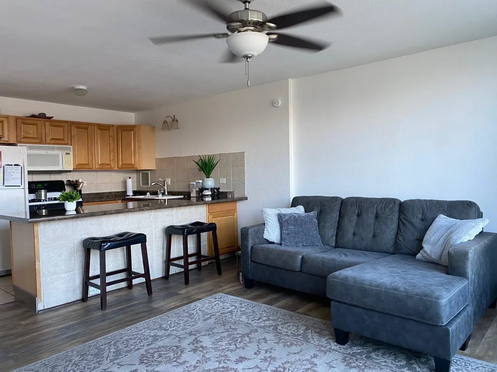 This charming and cozy one bedroom one bath unit located at Puuone Terrace, has one assigned parking stall near the elevator. The unit has new vinyl flooring in the living room, a gas stove, lots of cabinet space, and ceiling fans in both the living room and bedroom. The bathroom has a full-size bathtub and shower with lots of closet space. Puuone Terrace is conveniently located in Central Maui, a short drive to Queen Kaahumanu Shopping Center, University Of Hawaii, Maui Arts & Cultural Center; Kahului Harbor, and Maui Medical center. Maintenance fee includes: water, sewer, trash, propane, grounds upkeep, Master insurance policy for the property, and payment into the Capital Reserve Fund.