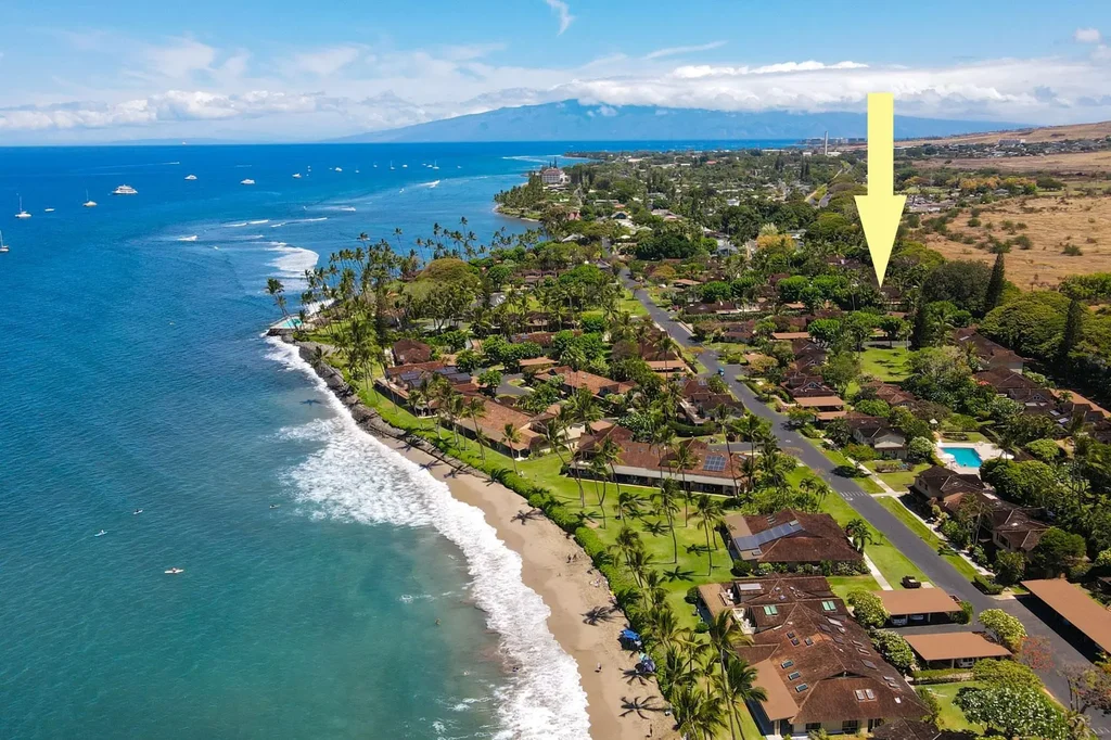 Aloha and welcome to Puamana 28-3, where "vintage meets modern" and the result is pure harmony. This darling, two bedroom, two and a half bathroom, two-story townhome was fully renovated in 2017, and some of the original vintage charm was carefully woven into the modern upgrades. For example, the contemporary wood cabinets in the bright and airy kitchen perfectly complement the classic wood wall paneling of the living room. Rare high ceilings with recessed lighting throughout, including upstairs, make this townhome feel spacious and bright, and the split-level ac system in the living room keeps it cool. Kitchen features high-end, stainless steel Frigidaire Gallery appliances, spotless quartz counters and gorgeous textured glass tile backsplash. Enjoy fresh water from the tap due to a water filtration system that services the entire townhome. Conversational style living room features original bamboo and rattan furniture that has been meticulously refurbished. The sleeper sofa features a springless memory foam mattress that makes for a comfortable night's sleep for additional guests. Chart your next travel adventure on the wall-sized, 1980s map of the world. Step outside to the private lanai and dine outdoors among the lush, tropical landscaping. Outdoor storage closets keep all your gear tidy and a convenient outdoor shower keeps all the sand outside. Wander up the bamboo and metal staircase to the two, full-size bedrooms with more bamboo flooring throughout. Tucked into those aforementioned rare high ceilings is a ductless air conditioning system, keeping you cool on those warm Lahaina nights. Primary bedroom features a king bed and side tables by Ion Design and has wonderful natural light and access to the permitted private lanai (deck) situated among swaying palm trees. En suite primary bathroom features a striking walk-in shower with subway tile and stone accents. Across the hall is the second bedroom with a large picture window, two twin Nook beds by Blue Dot, and an updated, custom, walk-in, California Closet. Custom window coverings throughout both bedrooms include black out blinds for great sleep. Hallway bath has an eye-catching, sea-glass embedded countertop, matching the other two bathrooms, and includes a full-size tub and shower. Two hallway closets offer plenty of storage space for linens and more. Solar hot water system installed. Downstairs bath includes a full-size Samsung washer and dryer - conveniently close to the front entrance, making it easy to manage an active family's laundry demands. Puamana 28-3 is nestled on the quiet, dead-end street of Puapake Place. Since 2014, this condo has been rented sparingly by owner's friends and family, keeping it in pristine condition. With no future rental bookings to honor, 28-3 is easy to show and is move-in ready! Interior and exterior furnishings included, as is a deeded covered parking spot steps away from the front door. Enjoy 28-3 as your new Maui home, a second home, or a highly desirable vacation rental. Puamana features 30 acres of lush landscaping, with palm trees and tropical flowers throughout. The Pacific Ocean and the breath-taking ocean pool is a short stroll across the mango tree field. The mauka (mountain) pool is an even shorter walk, but a safe distance from pool noise. Tennis court and newly installed pickleball court keep the activity level high, and a third pool with a children's playground keep the little ones engaged. Surf one of the three surf breaks along the expansive coastline of Puamana and enjoy a stroll along the (seasonally) sandy beach. The historic clubhouse features a gym with ocean views and the surrounding outdoor courtyard and seating area is the gathering place for those unforgettable Maui sunsets. World famous Lahaina Town and all its charming dining, shopping and entertainment is a short, cruiser bike ride away. Gated. Private. Oceanfront. There is a reason nearly everyone loves Puamana. Call or text today to schedule a showing.