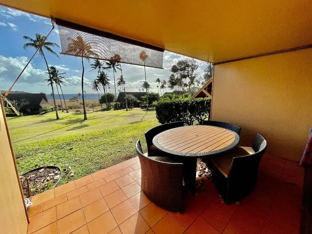Want to buy a piece of Paradise on the Island of Molokai. This lovely ground floor studio is a perfect place to own a piece of Paradise. Located on the sunny west side of Molokai where the beaches are perfect in the winter to surf and in the summer you can snorkel and swim. In ground pool sits up by the ocean and you can catch sunsets daily over the ocean with Oahu in the back ground. The condo has a king size bed, newly tiled floors, nice furnishings, ceiling fan and great lanai table to enjoy with friends you meet visiting . There a remodeled kitchen with a small stove, tiled back splash, good size refrigerator, a moveable cutting table and many small kind appliances. There is tub/shower combination that's been updated. Nice built in dressers, large closet and over head owner's lockable storage closet. These owner's rent their condo in a vacation rental pool and put a lot of things and thought into their condo to make their stay enjoyable. It's a perfect place to unwind, relax and find your self again. Furnishings included. The $479 a month HOApays water, electric, trash, grounds, sewer and outside maintenance. Another small HOA of $50 a year. This is the larger of the studios and building 16 has the washer and dryer for guest use.
