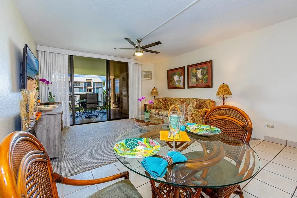 Kamaole Sands is one of South Kihei’s most revered properties. Located immediately across S. Kihei Rd. from Kamaole Beach Park 3 & a short stroll to Keawakapu’s world class stretch of 3 pastoral crescent beaches, this is a most desirable location! The 15 immaculately landscaped acres are a tropical oasis. A gorgeous pool & spa area are surrounded by lush foliage with fountains, ponds & streams meandering throughout the central courtyard. Unit 8-307 is a south facing lovingly maintained unit with an established rental history. The large ocean & pastoral upcountry view lanai area is highly valued by the present owners as not all one bedroom units are afforded this amount of outdoor living space. The owners enjoy immaculate morning breakfasts & their evening ‘Happy Hours’ on this spacious lanai. Upgrades included removal of the popcorn ceiling material plus both the powder-room full bath and the en-suite master bathroom are tiled from floor to ceiling & have custom stone & glass feature details. There are lovely new vanities & fixtures in both baths & several of the kitchen appliances are relatively new as well. The large window wall in the bedroom allows for lots of light. The generous size bedroom with en-suite bath features a king size bed & side tables while easily accommodating a full dresser. The unit is air conditioned & has a dedicated parking space. Wailea's world class amenities including golf, tennis, spas, fine-dining & shopping are close by! This is a must experience.