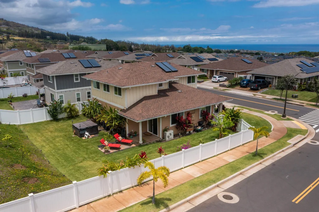Beautifully situated corner lot home in the very convenient and desirable Highlands at Kehalani. Nice sidewalks that allow you to roam and meet and greet neighbors. Walking paths to the park below with a nice large green expansive area for kids, dogs and even zumba! From the main bedroom one can see the great blue ocean all the way to the North Shore. Wake to the glorious morning colors above Haleakala. The 2 other bedrooms look out to the green of Iao Valley. Open the windows and let in the fresh mountain air. There is a bonus area that could be utilized as a home office or make it zen with a yoga area, massage table or art/ craft or reading nook. The large downstairs has room to create a formal dining experience or living area and parlor. It is currently set with a piano to fill the home with music. If you are the gardening type, Wailuku is the climate and soil for you. Plant your seeds and watch your garden grow!