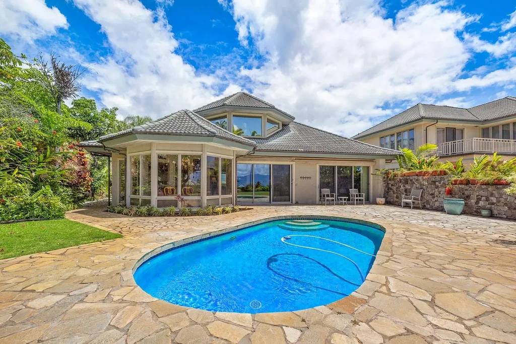 This beautiful 4bd home sits on a corner and thus on a larger lot than most homes in the Pineapple Hill subdivision. Various upgrades have been done over the years, including a complete remodel of the kitchen (cabinetry, appliances, added a wine cooler) in 2019. Spacious floor plan with a master suite facing the ocean, 3 guest suites (one of them is currently used as an office) and a den that can be used as a reading room, office, crafts room or play area. Enjoy your dinner in the sumptuous dining area or al fresco, on the large lanai. Go for a swim in the pool and pause to watch the whales or the stunning sunset colors. This 99 homes gated subdivision has a beautiful club house with tennis courts, large sitting area and pool.