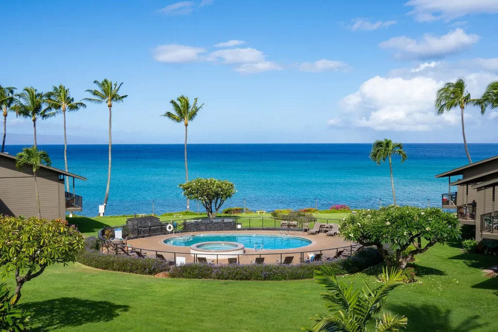 Big ocean views bring joy at Polynesian Shores 212. Wood beam ceilings and rich finishes contribute to the beach house character of this unique loft-style 2-bedroom. Polynesian Shores is a legacy oceanfront vacation property located in West Maui’s Mahinahina neighborhood, just minutes to Kapalua and Kaanapali resorts, with access to world class golf courses, dining, hiking, spas, and beaches, five miles north of historic Lahaina town. Meander through the lovely grounds planted with fruit trees and tropical flowers. Watch humpback whales in the winter and green sea turtles all year. Major capital improvements have been completed at Polynesian Shores including an exterior renovation with all new windows and doors, new siding, a pool renovation, and the addition of a hot tub spa and new BBQ’s. One of only 26 upper floor units, 212 enjoys arguably one of the best locations in the development for its ocean and sunset views and convenience to parking. Short-term vacation rentals are permitted. Polynesian Shores 212 is being sold furnished and turnkey.