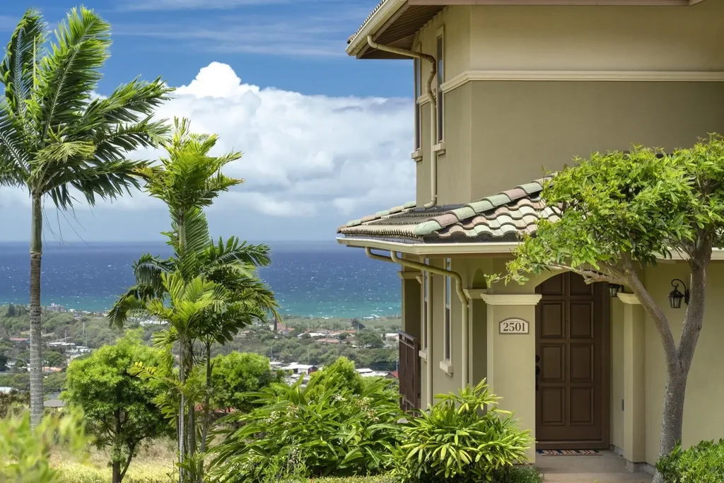 Stunning Ocean Views from the ultimate villa you have been searching for. Arguably the best location within the Villas at Kehalani; top right-hand corner backing up to the greenbelt. Private end unit within a pet-friendly, luxury gated community with sweeping vistas from the ocean to Haleakala. This two-story spacious townhome features an attached two-car garage, large covered lanai, central air conditioning, granite countertops, African Teak cabinets and stainless steel appliances. Thoughtful floor plan with living, dining, kitchen and a powder room on the first floor, two en-suite spacious bedrooms and laundry upstairs and tons of storage throughout. Centrally located, close to everything... the airport, shopping, medical center, beaches, dining and golf. This amazing property checks every box! Easy to Show.