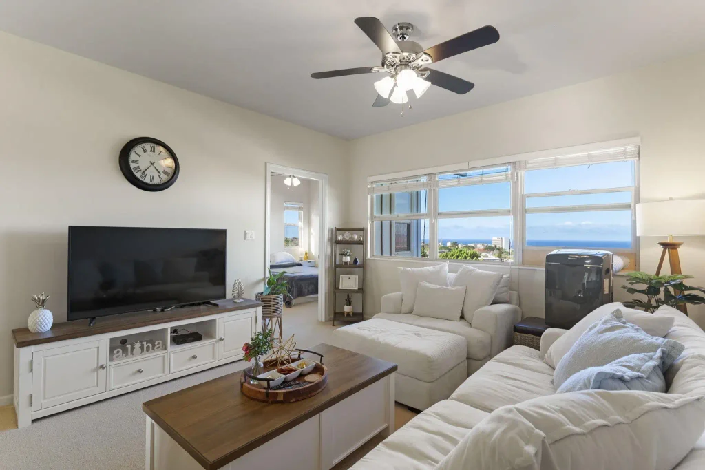 This ocean view Ho'olea Terrace condo is located on the top floor and offers sweeping vistas of the Pacific Ocean and Haleakala, set to the backdrop of the West Maui Mountains. This 2 bedroom, 1.5 bath unit is in a prime location and you can feel the cool breezes from the ocean and West Maui Mountains. The unit comes with two parking stalls and the complex is pet friendly. Hoolea Terrace is located in the popular Kehalani Community, which includes Pu'ukui Elementary School, Foodland, Longs, Walgreens, Starbucks and more.