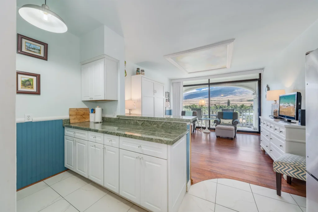 Very spacious and comfortable, fully furnished studio apartment for sale @ Lahaina Shores. Unit 628 features a queen size murphy bed, full kitchen, full bath with glass and tile shower central air and spectacular west Maui Mountain views.