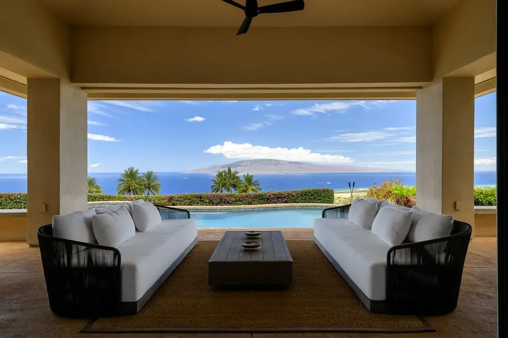 Floating above Lahaina at the top of Launiupoko, allow yourself to be ensconced in this private and distinctive location. Peaceful and lush, the ocean and outer island views of this legacy property encapsulate everything you have wanted in your Maui home. Gaze down the slopes of the West Maui Mountains to the coastal beaches bristling with summer swells. Morning walks through the bountiful tropical orchard of coconut, banana, citrus, avocado, taro, pineapple, strawberry papaya, dragonfruit, lychee, and lilikoi stir your imagination. You are delighted in the opportunity to reflect upon the aesthetics of building your Maui home. Not that your present dwelling will leave you wanting more. This thoughtfully designed 3 bedroom 2.5 bath home flows through the interior and exterior spaces to capitalize on the unobstructed and lofty views. Stellar execution of craftsmanship and materials are evident. A seperate two bedroom, one bath wing connected by a breezeway imparts a privacy to the ensuite master bedroom. Relish in the ability to build another home at your leisure while you live next door, or possibly CPR the property allowing other paths to unfold in your bright future ahead.