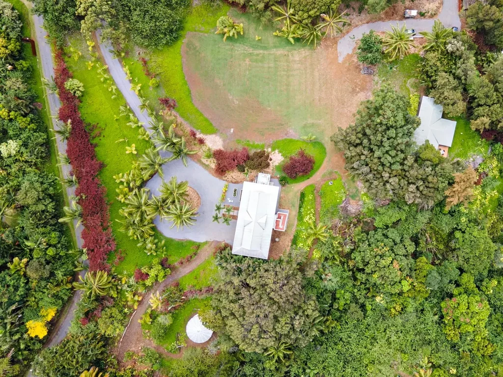 So much splendor in this grassy 3.35 acre, tropical Hawaiian estate that you will never want to leave. A perfect compound to hide away from the world at large, and soak up the peaceful and serene ambiance, and unforgettable character of this well maintained paradise. Fall in love with the main house and its many surprising assets, like the eye popping walls of windows that fill the home with views from all directions. This highlights the indoor – outdoor Maui preferred way of life, bringing the outdoors right into the main living area. Bright light emanates throughout this home, highlighting the two story, vaulted ceilings, accentuating the natural stone and Regatta wood top - vinyl core Hybrid flooring on the main level. Enjoy the exceptional Steam Room Shower off the master and the many uses of the loft as a bedroom / yoga room / office. Take part in the absolute convenience of the highest speed, fiber optics internet on Maui. Immerse yourself in the spirit of the land, with its ocean views from both the main house and cottage. Clear your mind in your morning meditation on your own hiking trail, merge with the soul of the tropical flowers that cover the ancient trail walls and bathe in the soft breezes. Everything you can think of is possible right here! Luxuriate in the ocean views of the cottage and main house while you BBQ in the many outdoor living spaces with friends and enjoy great conversations. Select your meals from your own veggie garden producing delicious produce and herbs now. Go completely off the grid by adding solar. There is a 2nd Kulike Road hiking trail that goes all the way to the ocean, Pilale Bay. And that’s not all! Property has an advanced catchment system with UV light, reverse osmosis, new liner with warranty, and its own Ring Smart Security System, extended on the property and in both the cottage and main house. BEST OF ALL: This property has not been CPR’d, which is a valuable asset that allows homeowners to split the property and sell off a part, for example, the adorable 1 bedroom, ocean view Cottage. (Main House: Sq Ft is 1883, yet loft is assessed at 70% sq ft, hence listed as 1752 sq ft but lives much bigger with it's indoor - outdoor spaces including a fire pit and a massive indoor - outdoor entry).